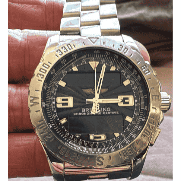 This pre-owned Breitling Airwolf A78363 features a commanding 44mm stainless steel case housing a highly accurate quartz movement, ensuring precision timekeeping under any conditions. The black dial is both striking and functional, offering excellent legibility, while the sapphire crystal provides scratch resistance for daily wear. The stainless steel bracelet, secured by a folding clasp, offers both comfort and security, reinforcing its tool-watch credentials. With water resistance up to 50 metres, it’s ready for both adventure and everyday reliability.