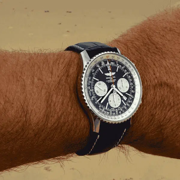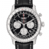 Housed in a robust 43mm stainless steel case, the Navitimer 01 AB0121 features the instantly recognisable bidirectional slide rule bezel, a tool pilots have relied on for in-flight calculations since the 1950s. Its deep black dial is paired with luminous hands and markers for optimal legibility, while the in-house automatic chronometer-certified movement ensures accuracy and durability worthy of its aviation pedigree. The black leather strap offers comfort and versatility, transitioning easily from cockpit to boardroom.