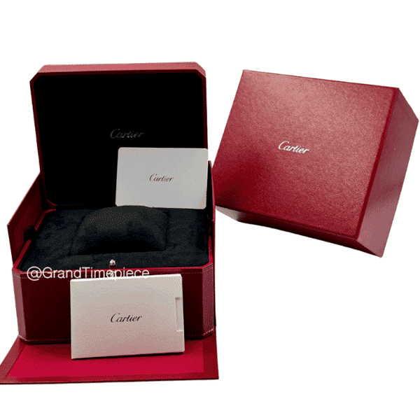 Inside, the reliable Cartier Calibre 157 quartz movement ensures impeccable accuracy, while a 30-meter water resistance adds everyday practicality. This piece comes with its original box, papers, and authentication certificate, guaranteeing its provenance and quality.
