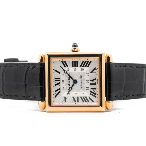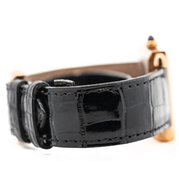 This pre-owned Cartier Tank Obus W1516956 originates from Cartier’s revered Collection Privée Cartier Paris (CPCP), a high-horology programme celebrated for exceptional craftsmanship and limited production. First introduced in 1929, the Tank Obus departs from the classic rectangular Tank silhouette, presenting a square yellow-gold case accented by sculptural bullet-shaped lugs—“obus” meaning shell in French. The result is a design that feels both architectural and ornamental, blurring the line between timepiece and fine jewellery.