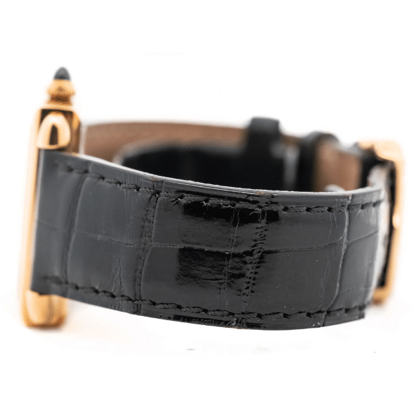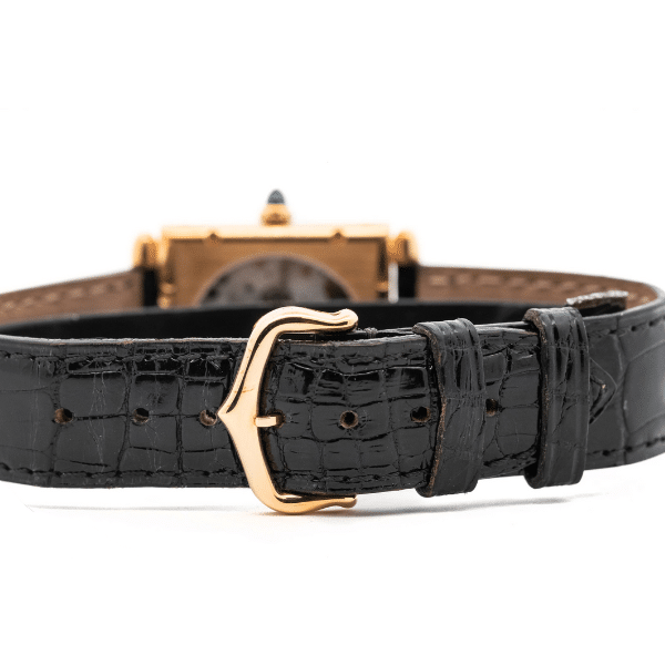 Crafted in yellow gold with a refined 26.5mm case, its distinctive bullet-shaped “Obus” lugs set it apart from every other Tank. Inside beats a beautifully finished manual-wind movement from Cartier’s prestigious CPCP era. This example is in mint, like-new condition and has been professionally inspected and authentication certified, offering confidence alongside exceptional collectability.