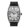This pre-owned Franck Muller Tonneau Curvex 7502 pairs elegance with reliability. The silver dial, framed by a fixed steel bezel, is adorned with bold black Arabic numerals and finely crafted blackened steel hands, delivering both legibility and character. Protected by a domed scratch-resistant sapphire crystal, the dial retains its clarity and beauty, even with daily wear. Complementing the case is a supple black leather strap secured by a stainless steel tang buckle, creating a seamless balance between comfort and sophistication.