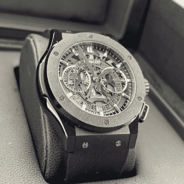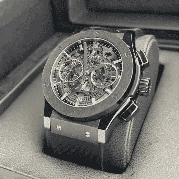 Dark, sleek, and undeniably bold—the Hublot Classic Fusion Aerofusion Black Magic is a watch that speaks to those who embrace modern prestige and daring design. With its striking fusion of materials and contemporary aesthetic, it stands as a testament to Hublot’s commitment to innovation in both form and function.