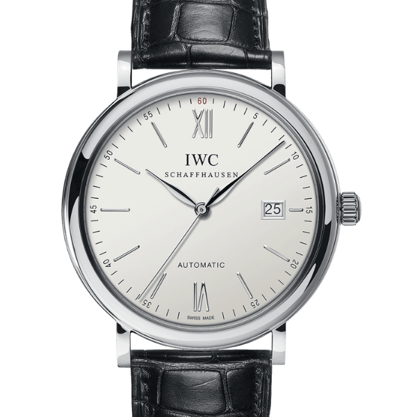 The silver dial is clean and highly legible, featuring refined hour markers and slim hands that reflect IWC’s commitment to precision-focused design. A discreet date window at 3 o’clock adds everyday practicality without disrupting the dial’s symmetry. Protecting the face is a scratch-resistant sapphire crystal, ensuring durability and long-term clarity.