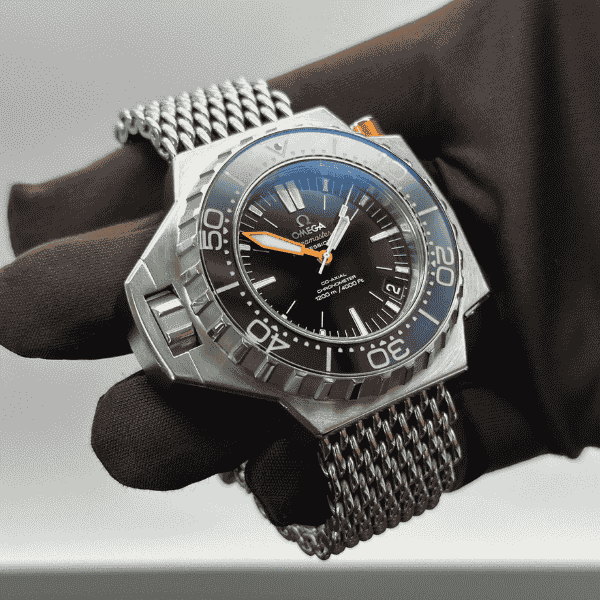 At its heart beats the Omega Co-Axial Calibre 8500, a chronometer-certified automatic movement renowned for precision, stability, and long-term performance. With water resistance up to 1200 metres (4000 feet), a helium escape valve, and a screw-in crown, this watch remains a benchmark of technical achievement and reliability in extreme environments. Yet beyond its functionality, the PloProf 1200M embodies the collector’s appreciation for Omega’s dual mastery of technology and tradition — a watch made to be worn, admired, and passed down.