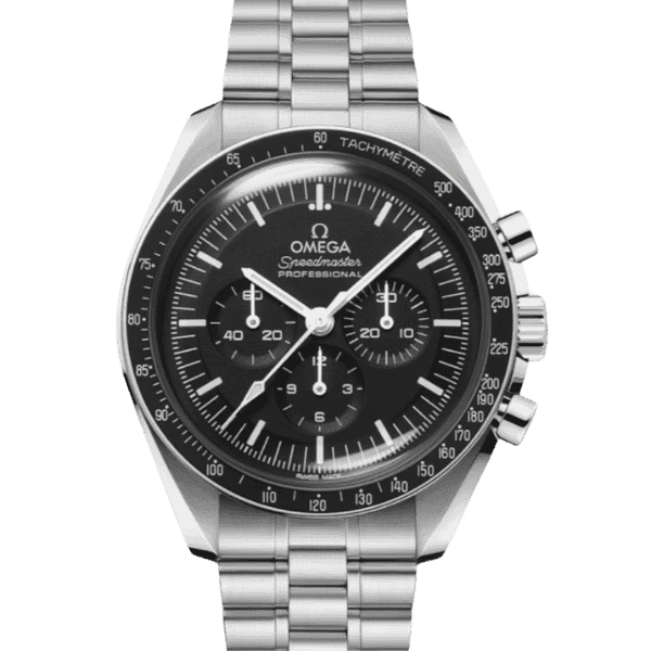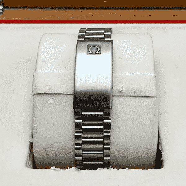 The pre-owned Omega Speedmaster Chronograph 145.022-74 features a 42mm stainless steel case that has been lightly polished, ensuring a refined yet authentic presence on the wrist. Its striking black dial is complemented by luminous hour markers and chronograph subdials, all powered by the celebrated manual-wind calibre 861 developed by Lemania. This particular example retains its original crown and is paired with the Omega 1175 bracelet and 47 endlinks, further enhancing its desirability as a collector’s piece.
