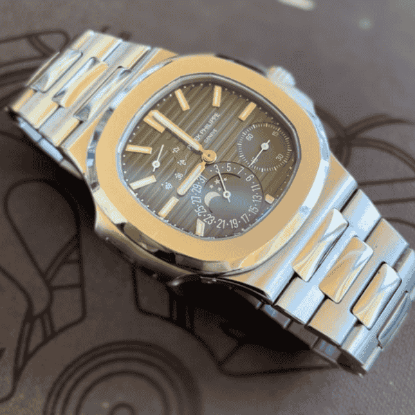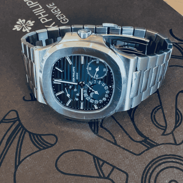 Few timepieces capture the balance of elegance, complexity, and exclusivity quite like the pre-owned Patek Philippe Nautilus 5712. Since its introduction, the Nautilus has been celebrated for its unique porthole-inspired case, a vision first brought to life by the legendary Gerald Genta. The 5712 takes this legacy further, housing a harmonious combination of complications—moon phase display, analog date, and power reserve indicator—making it not just a design icon, but also a showcase of Patek Philippe’s mastery in mechanical watchmaking.