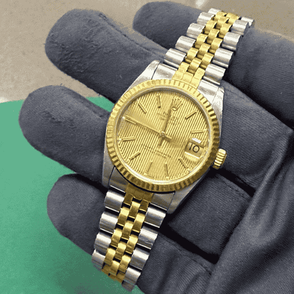 Originally launched in the early 1990s, this Rolex Datejust 31 showcases the brand’s iconic fluted bezel, a champagne dial with classic baton hour markers, and the signature Cyclops date window at 3 o’clock. The automatic self-winding movement ensures precision and reliability, while the five-piece Jubilee bracelet delivers comfort and refinement in every detail. Designed to be both durable and distinguished, the 31mm Oyster case offers waterproof assurance — a testament to Rolex’s engineering excellence.