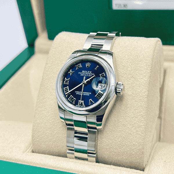 Some watches hold value; others hold legacy—and the pre-owned Rolex Datejust Lady 179160 belongs unmistakably to the latter. With its elegant blue Roman dial, refined 26mm proportions, and unmistakable Oystersteel construction, this model captures the essence of Rolex prestige in a compact, enduring form. For buyers, it offers the perfect blend of beauty, heritage, and long-term investment appeal.