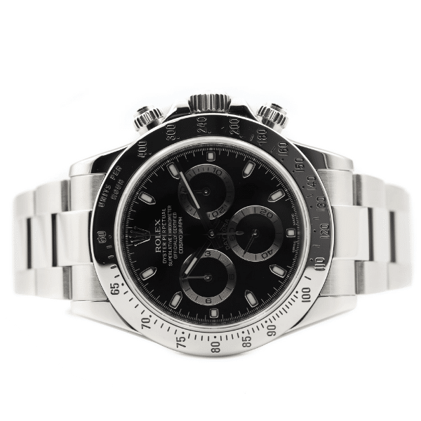 The Rolex Daytona 116520 represents a pivotal chapter in the model’s evolution. Crafted in 40mm stainless steel, this reference features the classic black dial configuration paired with a polished steel tachymeter bezel—an instantly recognizable design that effortlessly balances sport and sophistication. The Oyster bracelet enhances both durability and comfort, reinforcing the Daytona’s reputation as a watch built for performance yet refined enough for everyday luxury.