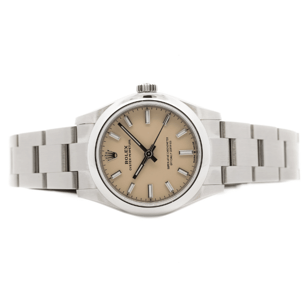 This Rolex Oyster Perpetual 31 277200 represents current production excellence, crafted for collectors who value heritage, precision, and enduring desirability over fleeting trends. The 31mm Oystersteel case offers a refined yet versatile presence on the wrist, appealing to buyers seeking balance, elegance, and long-term wearability. Its understated beige dial adds a modern softness to the classic aesthetic, elevating the watch beyond a simple timekeeper into a quietly prestigious statement.
