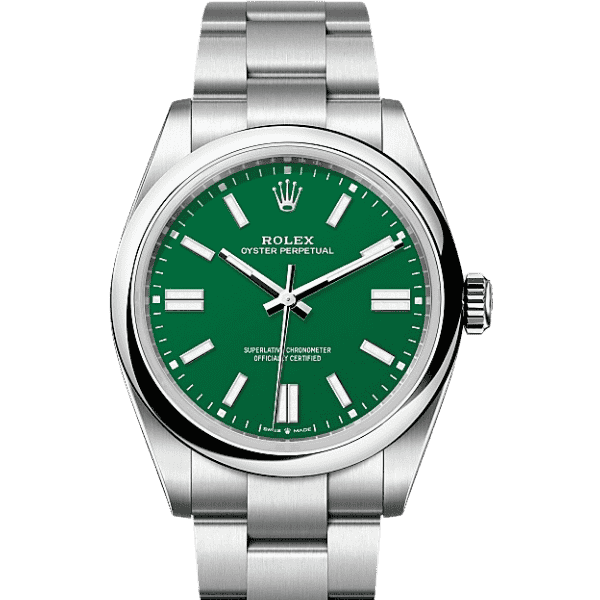 Crafted in stainless steel and measuring 41mm, the Oyster Perpetual 41 blends robust reliability with understated elegance. The Oyster case ensures exceptional waterproof performance, while the self-winding Rolex Perpetual movement, an officially certified chronometer, delivers unmatched accuracy and dependability. Its smooth bezel, signature Oyster bracelet, and polished finish highlight the brand’s commitment to excellence in both engineering and aesthetics.
