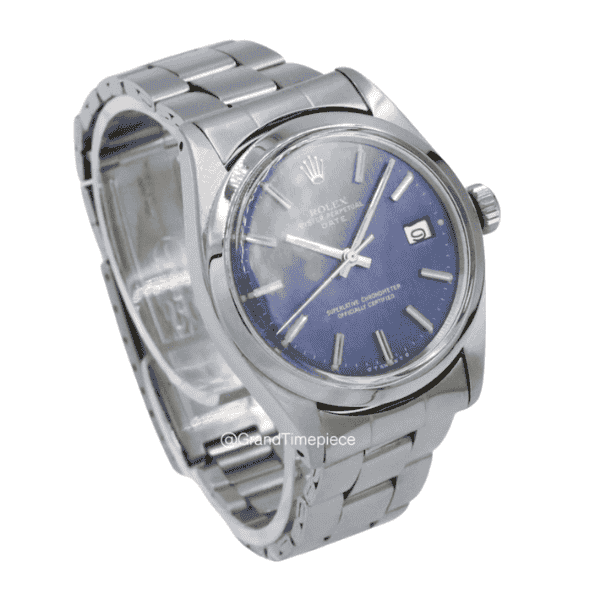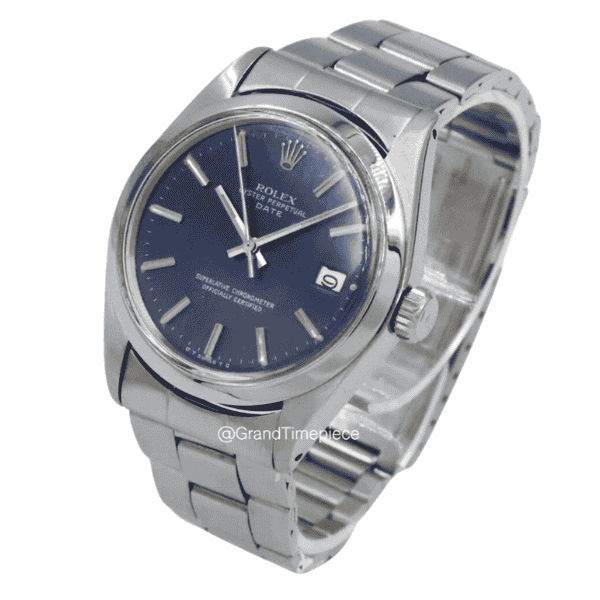 The Rolex Oyster Perpetual Date 1500 features a 34 mm stainless steel Oystersteel case and a fixed Oyster bezel, giving it a sleek and balanced profile that sits comfortably under a shirt cuff or makes a quiet statement on its own. The rich blue dial — restrained yet striking — offers exceptional readability and vintage charm, while the date window at 3 o’clock adds practical functionality. Inside, the reliable Calibre 1575 automatic movement ensures robust performance and a 48-hour power reserve, underscoring Rolex’s commitment to precision and durability.