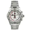 The TAG Heuer 2000 Searacer Regatta Chronograph, model CK111R, features a sturdy 38mm stainless steel case with a matching bracelet, delivering a versatile fit that transitions seamlessly from the boardroom to the regatta deck. Its white dial is highly legible and enhanced with a central red regatta hand for countdown timing, flanked by chronograph sub-dials that measure 1/10th of a second and elapsed hours. A unidirectional stainless steel bezel and sapphire glass provide durability and clarity, while the quartz movement ensures ultra-reliable accuracy. With water resistance up to 200 meters, this watch offers practicality alongside its sporty aesthetic.