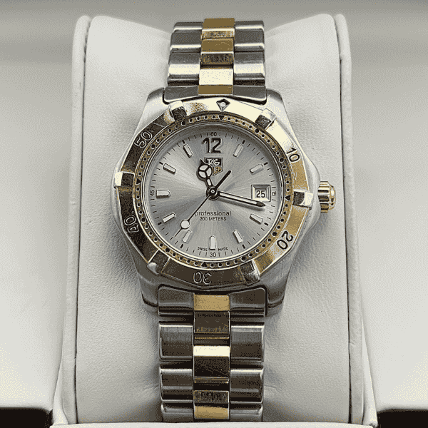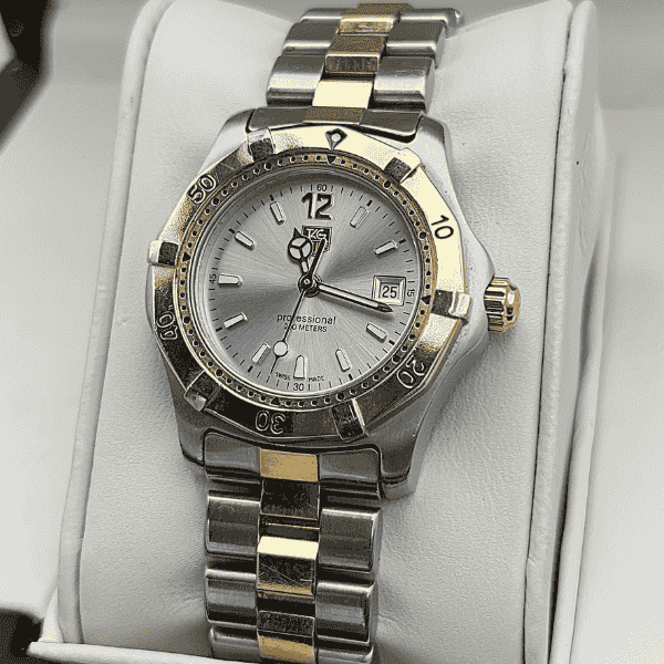 Sleek, versatile, and unmistakably TAG Heuer — the TAG Heuer 2000 Series Professional WK1321 is a timepiece designed for those who value both confidence and style. With its silver dial framed by a 28mm stainless steel case and complemented by a two-tone bracelet with yellow gold plating, this watch offers an understated luxury that feels right at home in both boardroom meetings and weekend pursuits.