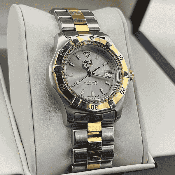 Crafted with precision quartz movement, the WK1321 ensures accuracy without compromise, while luminescent hands and markers deliver clear legibility in any setting. The stainless steel and gold-plated bracelet reinforces its refined presence, and the unidirectional rotating bezel adds a practical, sporty edge. As part of the iconic TAG Heuer 2000 Series — a collection that embodies the brand’s 150-year legacy of performance-driven design — this watch is a strong representation of Swiss watchmaking heritage.
