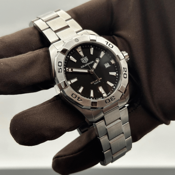 This pre-owned TAG Heuer Aquaracer 300m WBD1110.BA0928 comes from a collection designed to withstand the extreme demands of water sports and high-energy lifestyles. Rooted in TAG Heuer’s motorsport DNA and precision engineering, the Aquaracer is made for men who value action, reliability, and clean, purposeful design. Its 41mm stainless steel case offers a strong yet balanced wrist presence—sporty without feeling oversized—ideal for daily wear.