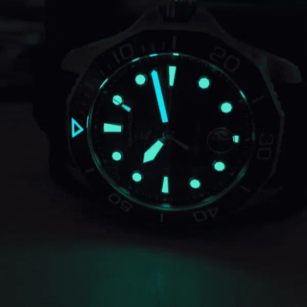 At its heart beats the Calibre 5 automatic movement, delivering precise timekeeping and a robust 38-hour power reserve. The date window at 6 o’clock is both practical and subtly integrated into the dial, ensuring legibility without sacrificing design symmetry. The blue rubber strap complements the dial perfectly while offering comfort and flexibility for active wear. With 300 meters of water resistance, screw-down crown, and sapphire crystal, it’s engineered for serious underwater performance while maintaining sleek elegance for office or evening wear.