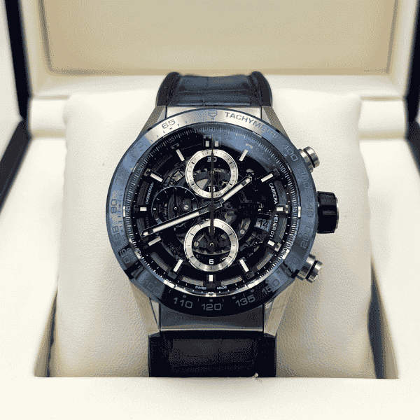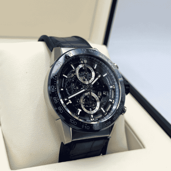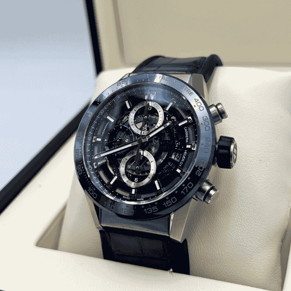 There’s something electrifying about seeing the mechanics of a watch come alive beneath a skeleton dial — a fusion of art, engineering, and motion. The pre-owned TAG Heuer Carrera 01 CAR201T captures that thrill instantly, delivering an expressive, motorsport-inspired design that commands attention. With its deep blue accents, openworked dial, and powerful chronograph layout, it appeals to buyers who want a watch that feels fast, modern, and unmistakably premium.