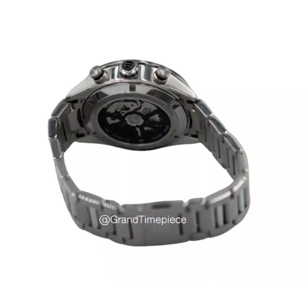The watch is secured with a fine-brushed stainless steel bracelet equipped with a folding clasp and double push-buttons, ensuring a secure and comfortable fit. With water resistance up to 100 meters, this Carrera is just as capable during active pursuits as it is stylish during formal occasions. Flip the watch over to admire the exhibition case back, where the inner workings of the Heuer 02 movement are proudly on display.