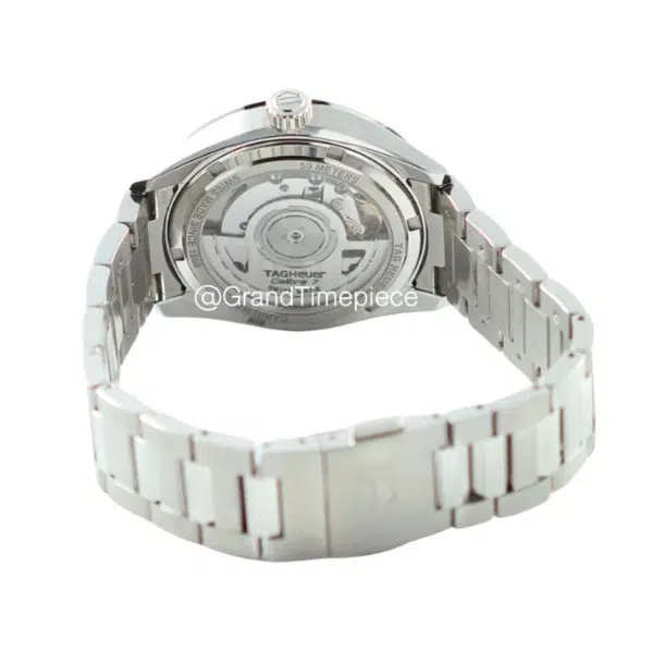Powered by the Calibre 7 automatic movement, the Carrera offers a 50-hour power reserve, visible through the exhibition case back, showcasing TAG Heuer’s mechanical craftsmanship. The watch is finished with a robust stainless steel bracelet and deployment clasp, blending comfort with contemporary flair for everyday versatility.