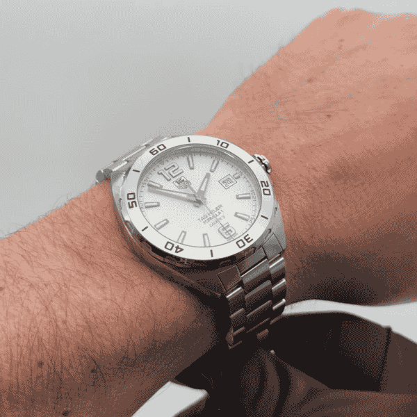 At its core, the TAG Heuer Formula 1 WAZ2114.BA0875 houses the automatic Calibre 5 movement, a proven mechanism based on the ETA 2824, operating at 28,800 vibrations per hour with a 38-hour power reserve. This precision movement, visible through the sapphire crystal caseback, drives hours, minutes, seconds, and date functions with effortless reliability. The 41mm stainless steel case and matching bracelet project strength and durability, while the crisp white dial with luminous markers ensures clarity in any light—an essential feature for active, on-the-go lifestyles.